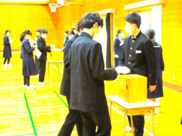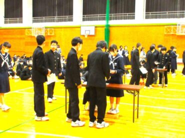 2026.3.3 生徒会 全校生 R8年度 前期生徒会長選挙 新年度を迎える前に前期生徒会長選挙を行いました。 立候補者の演説には、「笑顔にあふれ、生徒同士がお互いに高め合える今の校風をさらに発展させたい」という強い意志が感じられました。また、この春卒業を迎える3年生に対しては、「皆さんの母校となるこの伏木中学校を、よりよい学び舎にしていきます」と頼もしい誓いの言葉を述べていました。 この立会演説会は、会場全体が温かな雰囲気に包まれ、生徒全員が一つに結束したような一体感がありました。そして、学校全体で新しい一歩を踏み出そうとする力強さが感じられました。